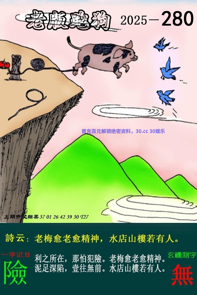 278期:【老跑狗特码诗】开【虎28】 玄机詩雲:開山劈地成六道,提防仆跌急扶持。夢中稱霸,不如醒爬。開山劈地成六道。小人得誌,毋須驚訝。提防仆跌急扶持。 诗句解:開山劈地成六道解地肖鸡羊狗鼠蛇虎。 |