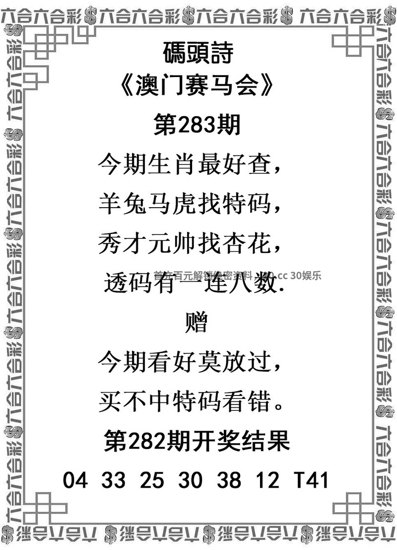 282期:绝杀二尾【2尾3尾】开:牛41准 |